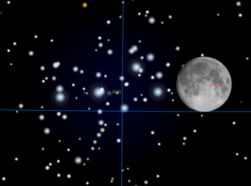 Plejaden langs. Er zijn dan veel sterbedekkingen van heldere sterren