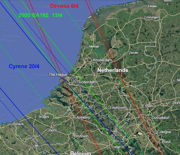 Sterbedekkingen door planetoïden in Nederland.
